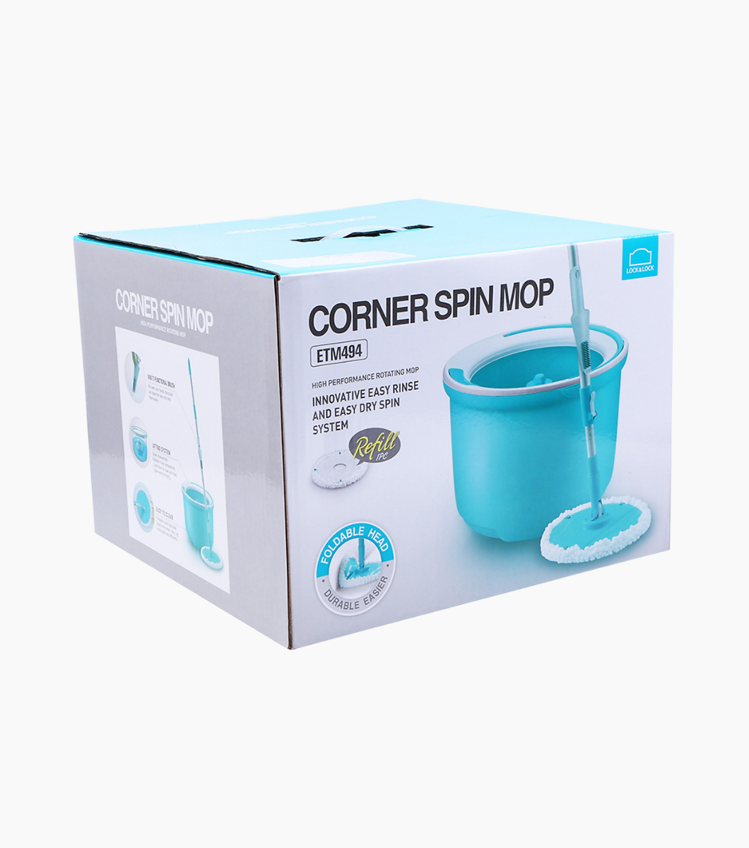BỘ CÂY LAU NHÀ XOAY TAY LOCKNLOCK CORNER – Ф 330*235MM – 2 BÔNG LAU – MÀU XANH BIỂN – ETM494