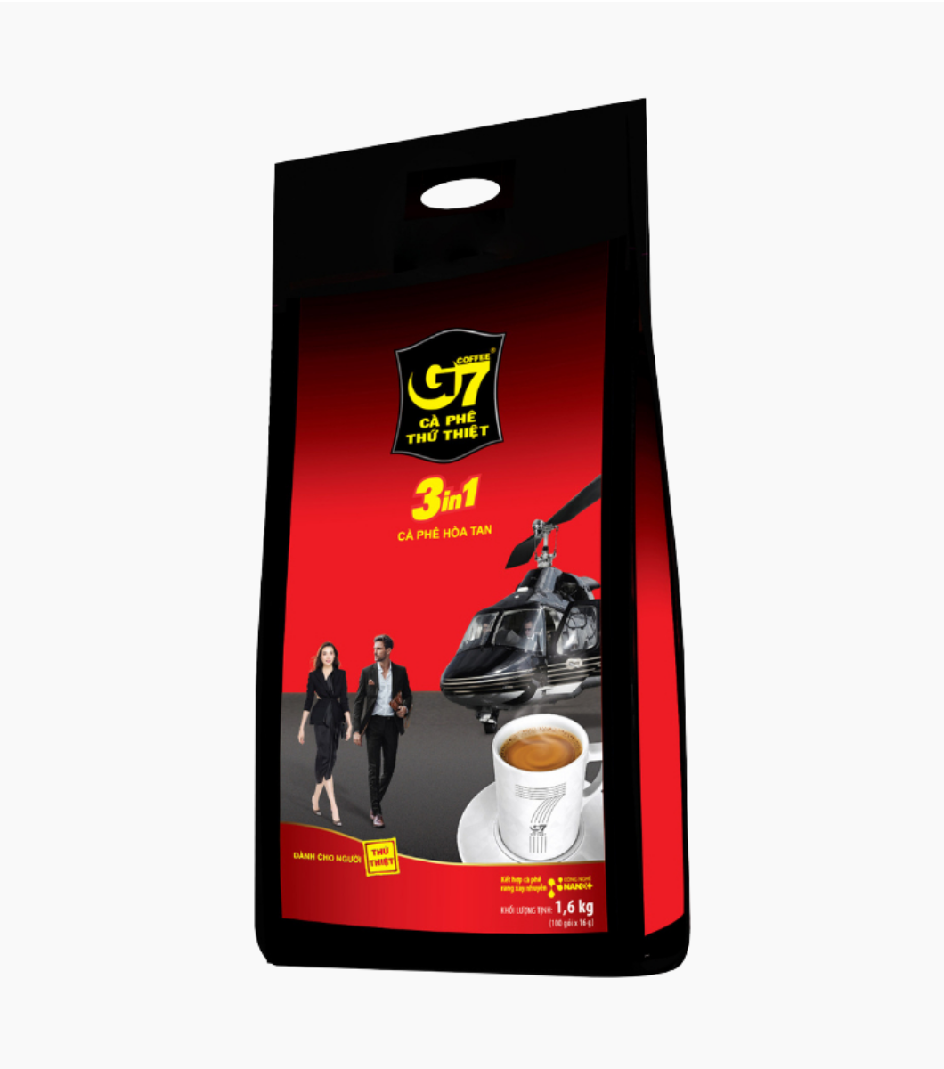 Cà phê G7 3in1 được chiết xuất từ những phần tinh túy nhất có trong từng hạt cà phê, trên công nghệ hàng đầu và bí quyết không thể sao chép để cho ra đời sản phẩm cà phê hòa tan thượng hạng, với hương vị khác biệt, đậm đà, hương thơm độc đáo quyến rũ mà không một sản phẩm cà phê hòa tan nào khác đạt được. Trong suốt 12 năm liên tục cà phê G7 được người tiêu dùng bình chọn là hàng Việt Nam chất lượng cao.