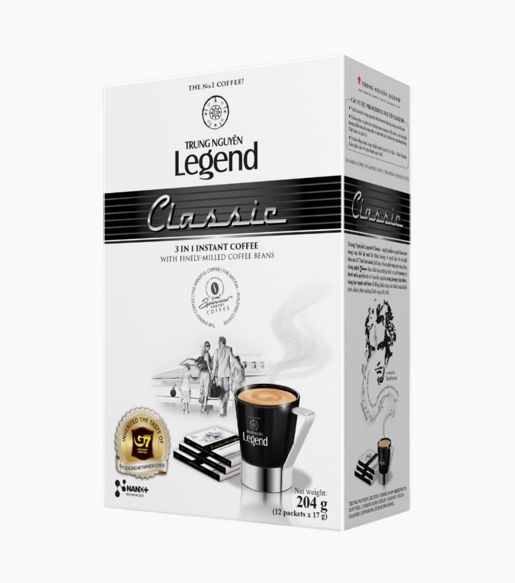 Kế thừa những tinh túy từ dòng sản phẩm cà phê hòa tan G7 trứ danh của Tập đoàn Trung Nguyên Legend: kết hợp những loại cà phê nguyên liệu tốt nhất thế giới cùng công nghệ NaNo và những bí quyết huyền diệu của Phương Đông, Trung Nguyên Legend Classic sở hữu lượng cà phê xay đặc trưng, thể chất mạnh cùng vị đắng đậm pha lẫn chút ngọt bùi đầy bản sắc.
